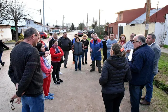 Funcionarios municipales se reunieron en la intersección de Maipú y San Martín con vecinos de Villanueva para conversar sobre el estado del barrio.